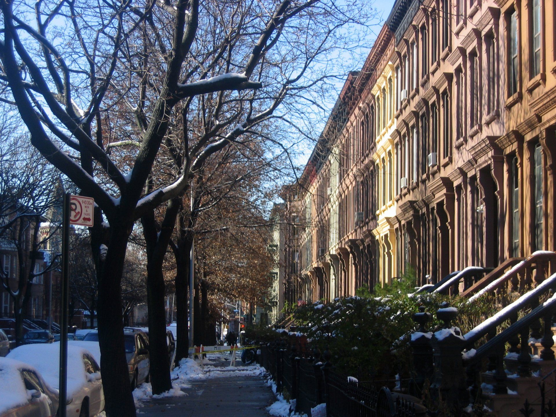 Summers are warm and humid, with daytime highs typically climbing into the mid-to-upper 80s°F and overnight lows settling in the upper 60s to low 70s. The urban heat island effect, amplified by the neighborhood's dense brownstone blocks and paved streetscapes, can push perceived temperatures even higher during heat waves. Winters are cold but not extreme, with average highs in the mid-30s to low 40s°F and lows dipping into the 20s. Snowfall is a seasonal reality, though accumulations tend to be moderate compared to inland New York.