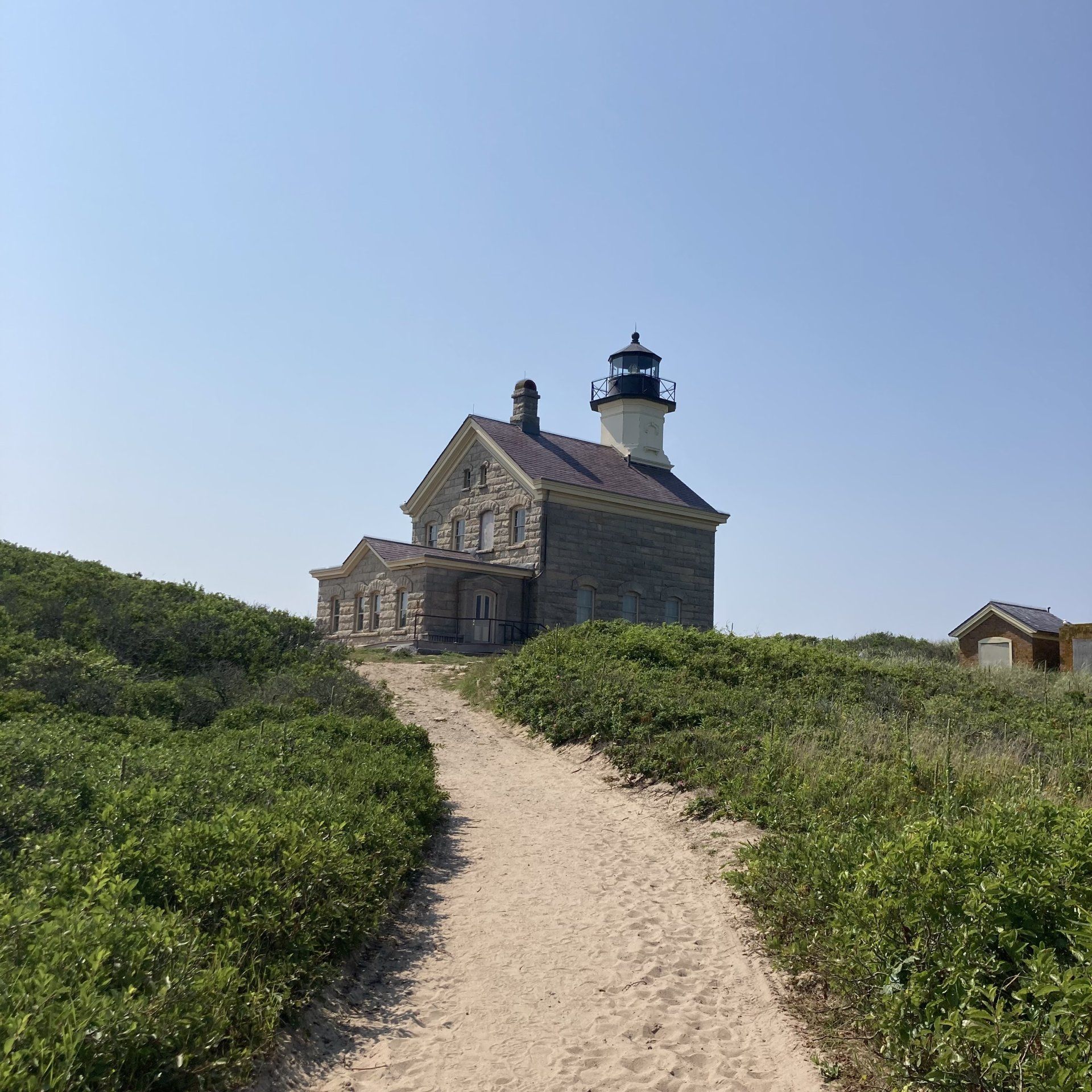 Two historic lighthouses anchor the island's cultural identity. The Southeast Lighthouse, a striking 52-foot brick tower perched atop Mohegan Bluffs and built in 1875, is one of the most photographed structures in Rhode Island. At the island's northern tip, the North Light — a sturdy granite structure dating to 1867 — guards the treacherous shoals of Sandy Point and now serves as a small interpretive museum. Together, they tell the story of Block Island's long and sometimes dangerous relationship with the sea. The island's deep history, from its Niantic and Narragansett roots to its 17th-century English settlement, is commemorated at Settler's Rock near Cow's Cove.